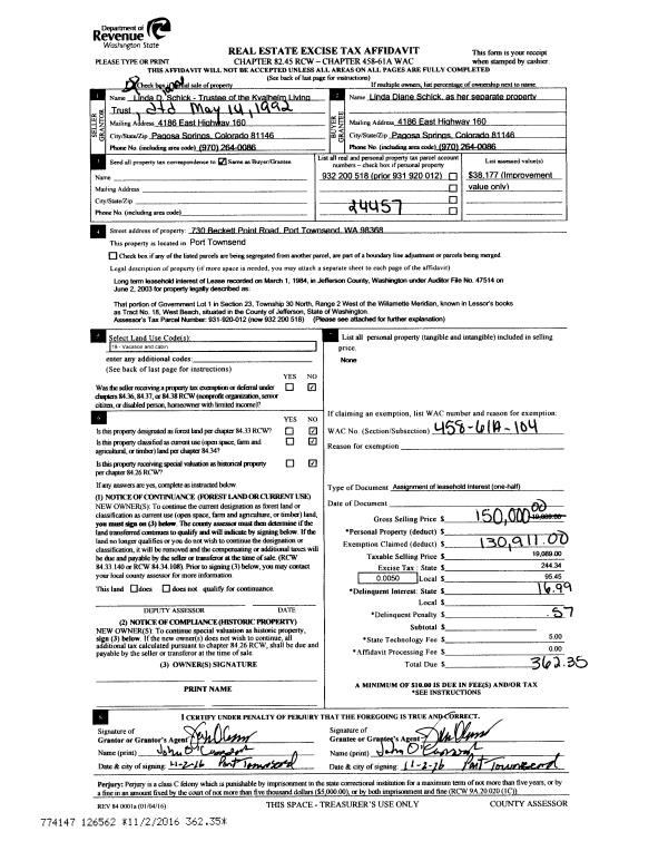 | 1 | 12/04/2003 | SWD | Statutory Warranty Deed | PORT LUDLOW ASSOCIATES LL | POWERS, LESLIE A/PATRICIA | 0 | 0 | $442,500.00 | 98967 | 0 |