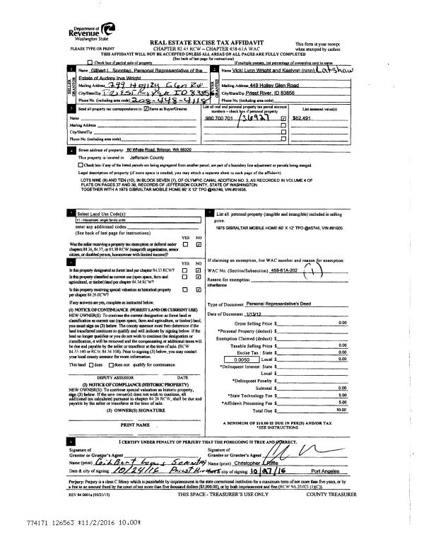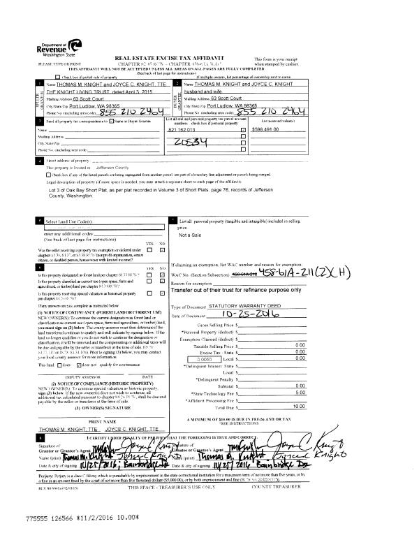 | 4 | 12/09/2003 | SWD | Statutory Warranty Deed | PORT LUDLOW ASSOCIATES LL | KAYSINGER, SUSAN J/GARY L | 0 | 0 | $554,611.00 | 99033 | 0 |
