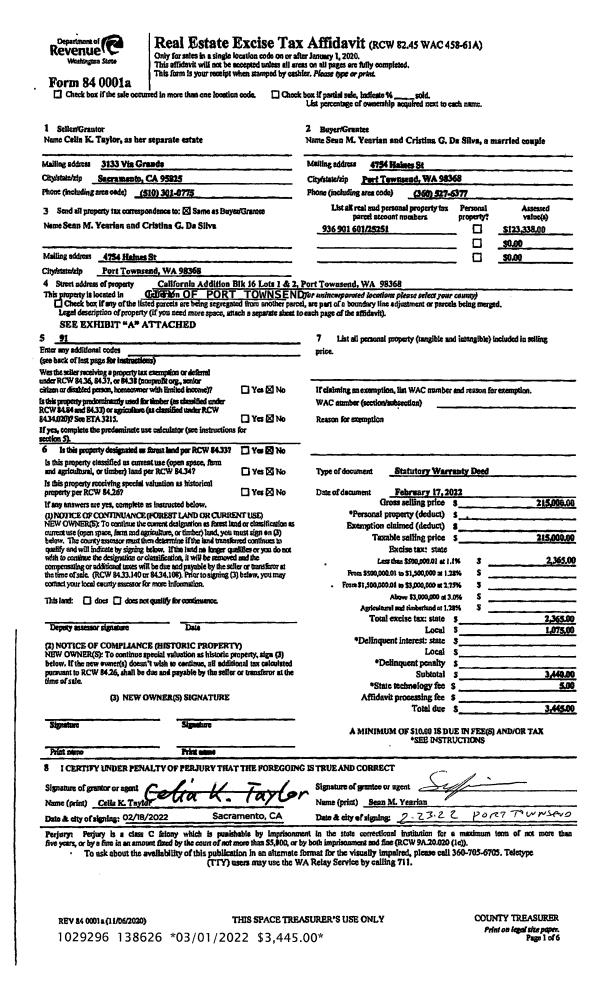| 3 | 04/27/2004 | SWD | Statutory Warranty Deed | PORT LUDLOW ASSOCIATES LL | JESTER, MALVERN HL/FRANCES H | 0 | 0 | $463,000.00 | 100234 | 0 |