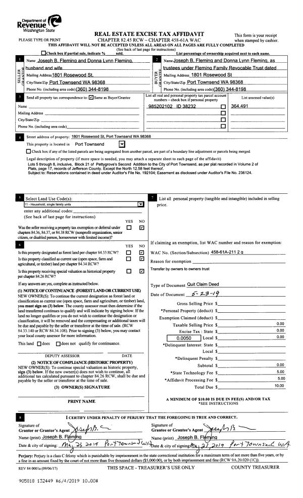 | Mailing Address: | 2971 OAK BAY RD PORT HADLOCK, WA 98339-9728 | % Ownership: | 100.0000000000% |