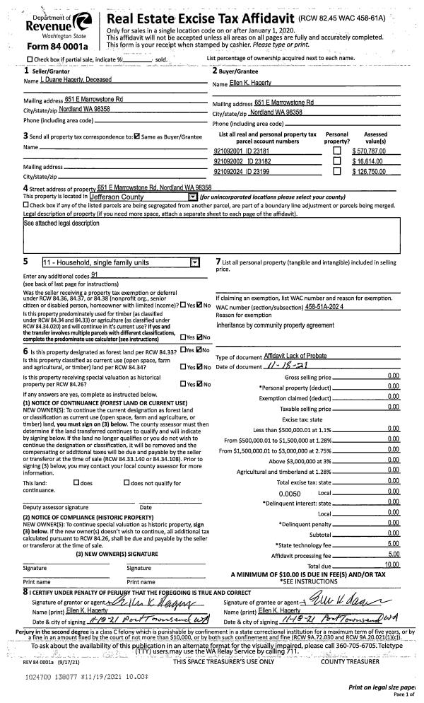 | Mailing Address: | LINDA A MILLER 207 LUDLOW BAY ROAD PORT LUDLOW, WA 98365 | % Ownership: | 100.0000000000% |