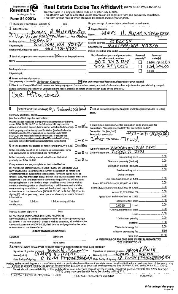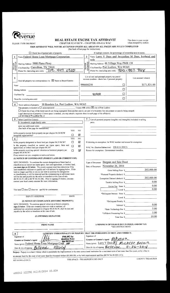 | 3 | 12/22/2003 | SWD | Statutory Warranty Deed | PORT LUDLOW ASSOCIATES LL | KNIGHT, J T & WILMA/TRUSTEE | 0 | 0 | $170,000.00 | 99171 | 0 |