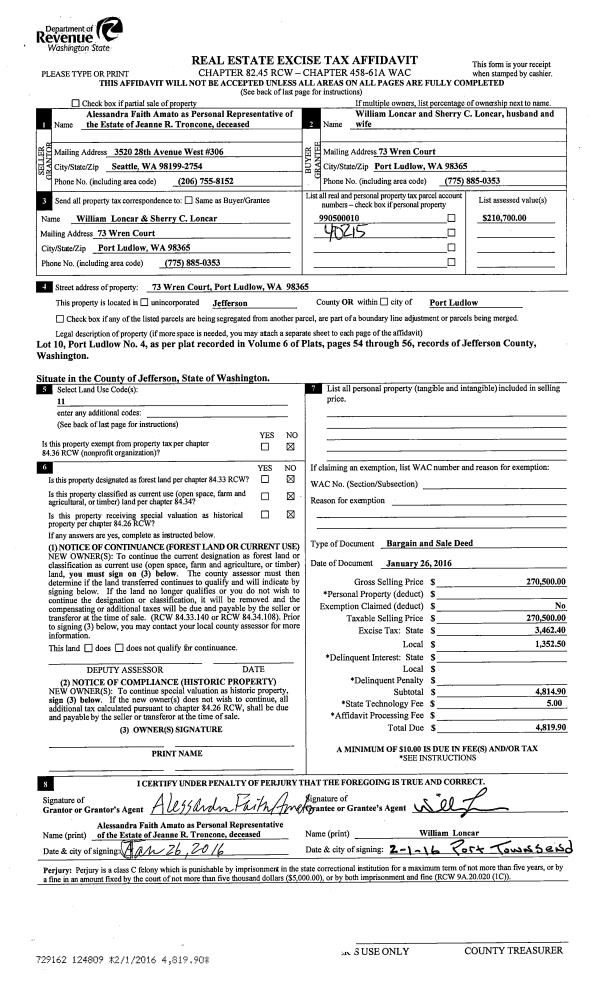 | Mailing Address: | 851 LUDLOW BAY RD PORT LUDLOW, WA 98365-8732 | % Ownership: | 100.0000000000% |