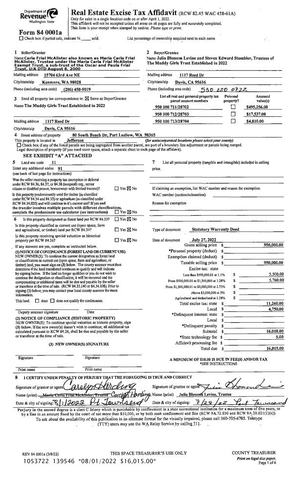 | 1 | 10/19/2022 | SWD | Statutory Warranty Deed | AUDREY D PEDERSEN | FRANCOIS & SUZANNE ROUAIX | | | $1,500,000.00 | 140034 | |