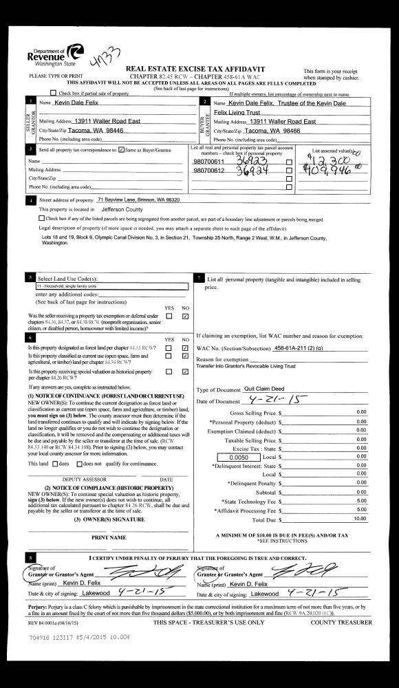 | Mailing Address: | KARIN L NYROP 250 S BAY LN PORT LUDLOW, WA 98365-9562 | % Ownership: | 100.0000000000% |