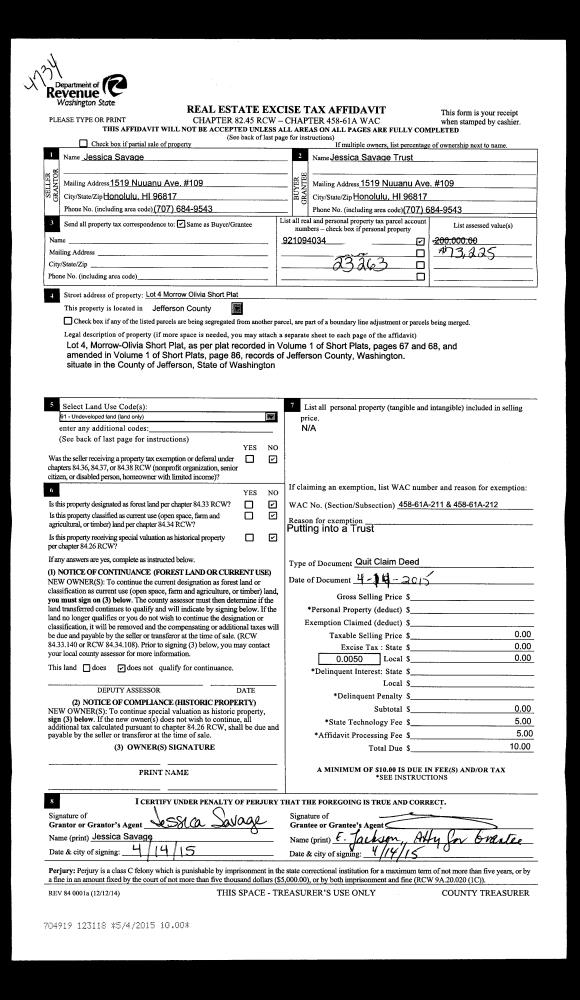| Mailing Address: | 270 S BAY LN PORT LUDLOW, WA 98365-9562 | % Ownership: | 100.0000000000% |