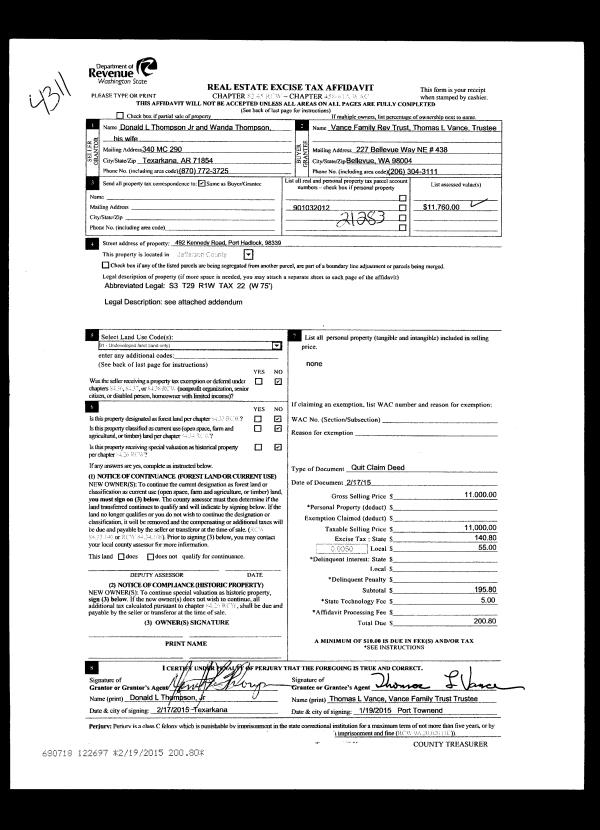 | Mailing Address: | 201 SOUTH BAY LN PORT LUDLOW, WA 98365 | % Ownership: | 100.0000000000% |