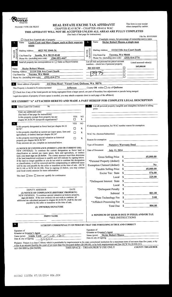 | Mailing Address: | 181 S BAY LN PORT LUDLOW, WA 98365-8784 | % Ownership: | 100.0000000000% |