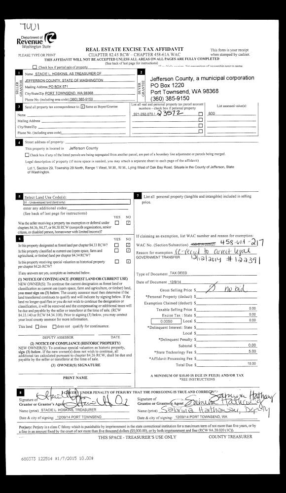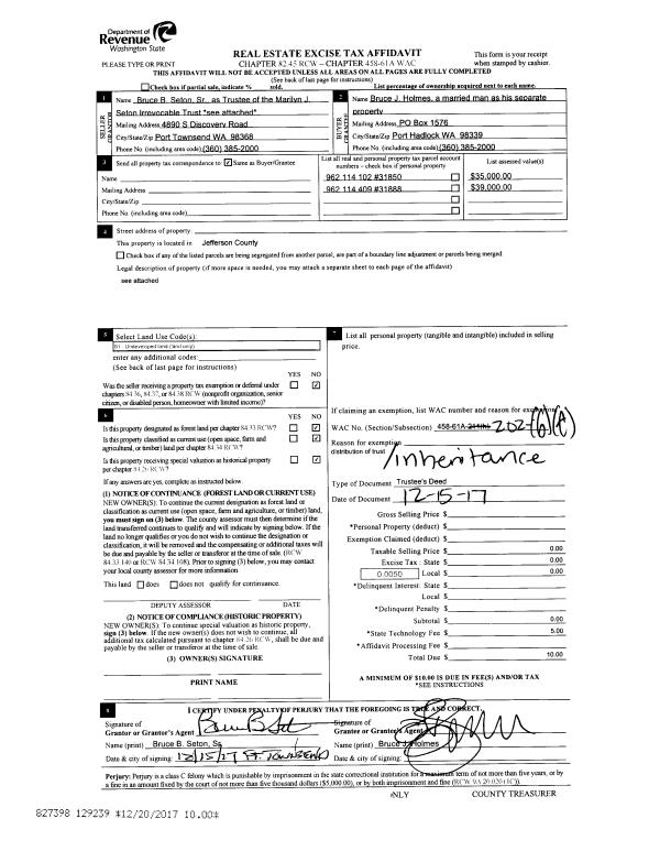 | 6 | 12/12/1996 | SWD | Statutory Warranty Deed | POPE RESOURCES | KNODLE, EDWARD M/JANICE D | 0 | 0 | $190,000.00 | 81009 | 0 |