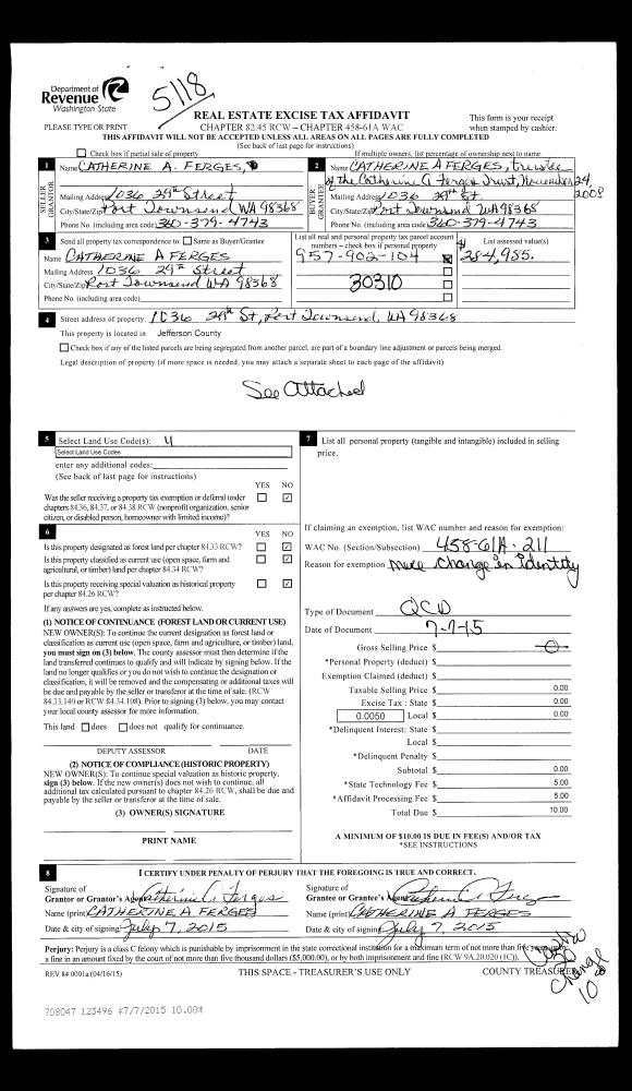 | Mailing Address: | 5420 GLENWOOD RD SW PORT ORCHARD, WA 98367-7508 | % Ownership: | 100.0000000000% |