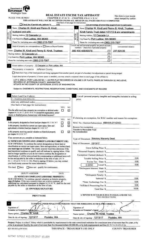 | Mailing Address: | 2281 HASTINGS AVE W PORT TOWNSEND, WA 98368-9639 | % Ownership: | 100.0000000000% |