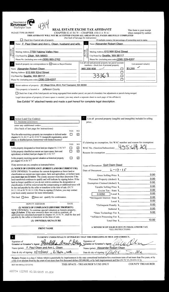 | Mailing Address: | LIANN J VINES 331 BAYSHORE DR PORT LUDLOW, WA 98365-9401 | % Ownership: | 100.0000000000% |