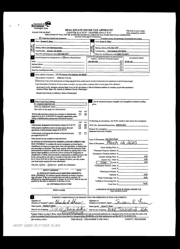| Mailing Address: | 300 MATS MATS BEACH RD PORT LUDLOW, WA 98365 | % Ownership: | 100.0000000000% |