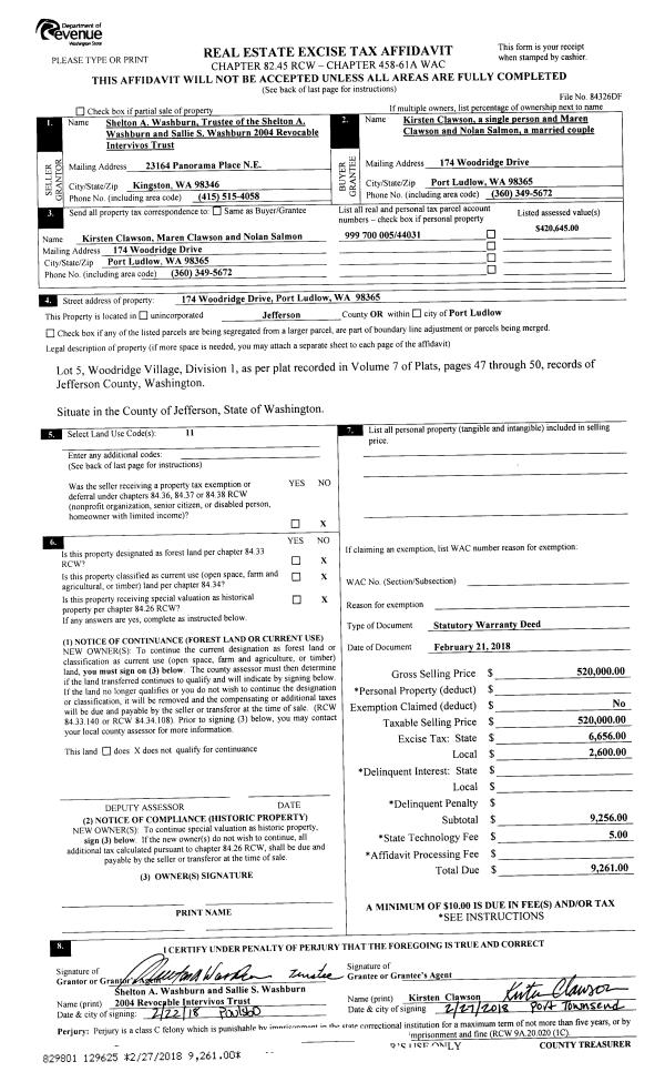 | 1 | 12/04/2018 | SWD | Statutory Warranty Deed | BRIAN D PETERSON | FARON W FLETCHER | | | $95,000.00 | 131511 | |