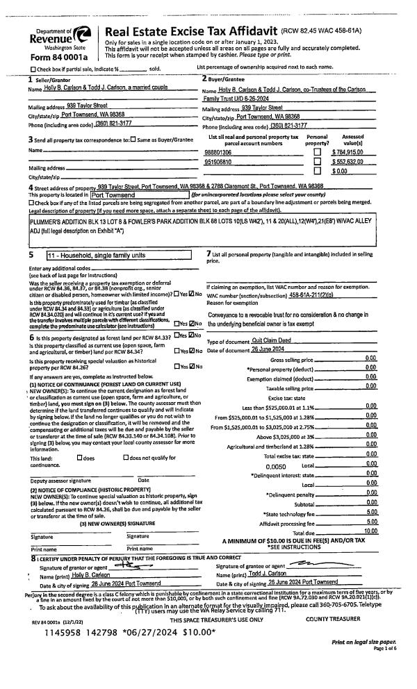 | 2 | 07/07/2024 | SWD | Statutory Warranty Deed | MELISSA K MUIR | KATHLEEN A MUIR | | | | 142980 | |