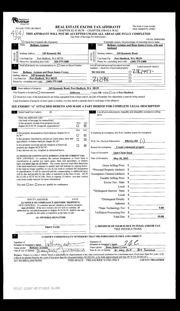 | Mailing Address: | SHANNON T HUNTER 210 S BAYVIEW DR PORT LUDLOW, WA 98365-9470 | % Ownership: | 100.0000000000% |