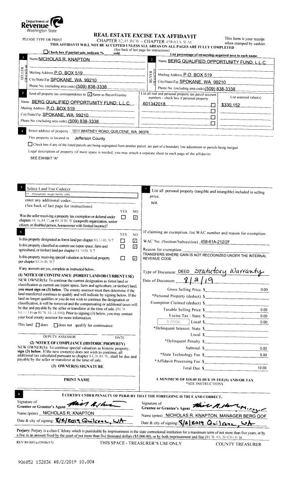 | Mailing Address: | PO BOX 184 PORT HADLOCK, WA 98339-0184 | % Ownership: | 100.0000000000% |