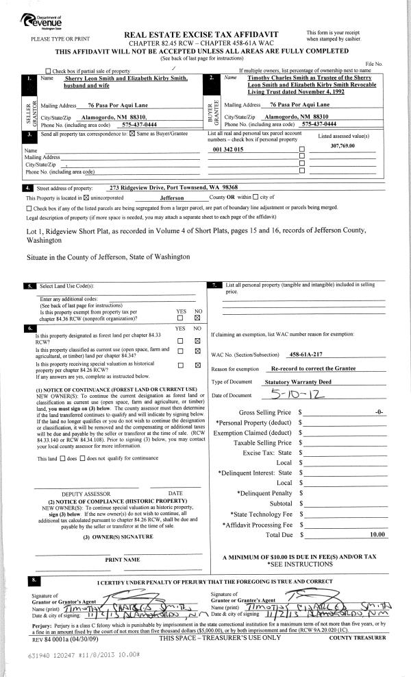 | Mailing Address: | 43 WINDSOR LN PORT TOWNSEND, WA 98368-9591 | % Ownership: | 100.0000000000% |