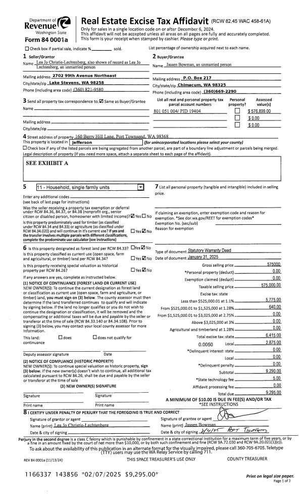 | Mailing Address: | 3110 MCCLELLAN ST PORT TOWNSEND, WA 98368-4832 | % Ownership: | 100.0000000000% |