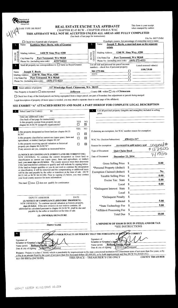 | Mailing Address: | MARY S MCKEE TRUSTEE 3190 MCCLELLAN ST PORT TOWNSEND, WA 98368-4832 | % Ownership: | 100.0000000000% |