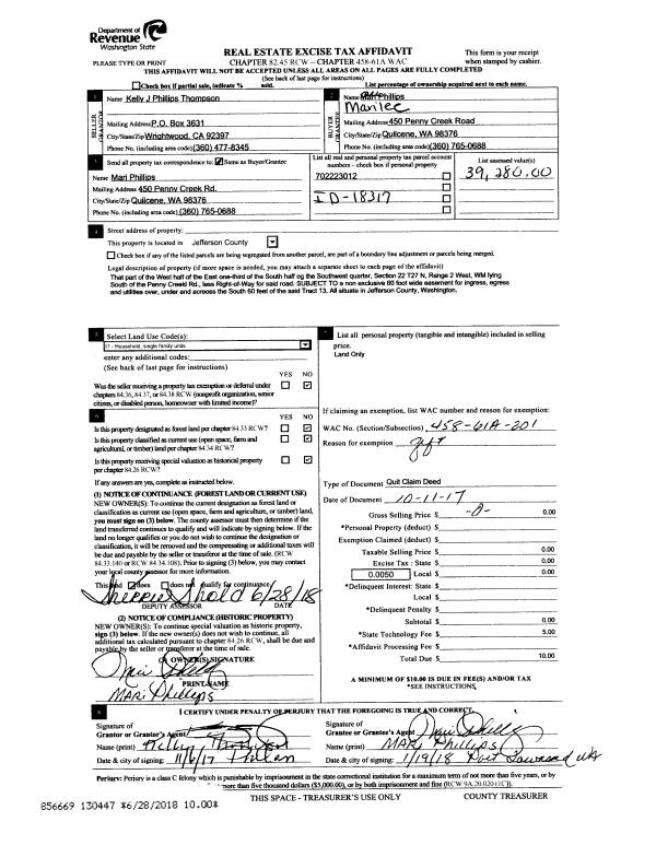 | Mailing Address: | 3137 MCCLELLAN ST PORT TOWNSEND, WA 98368-4833 | % Ownership: | 100.0000000000% |