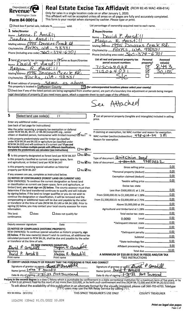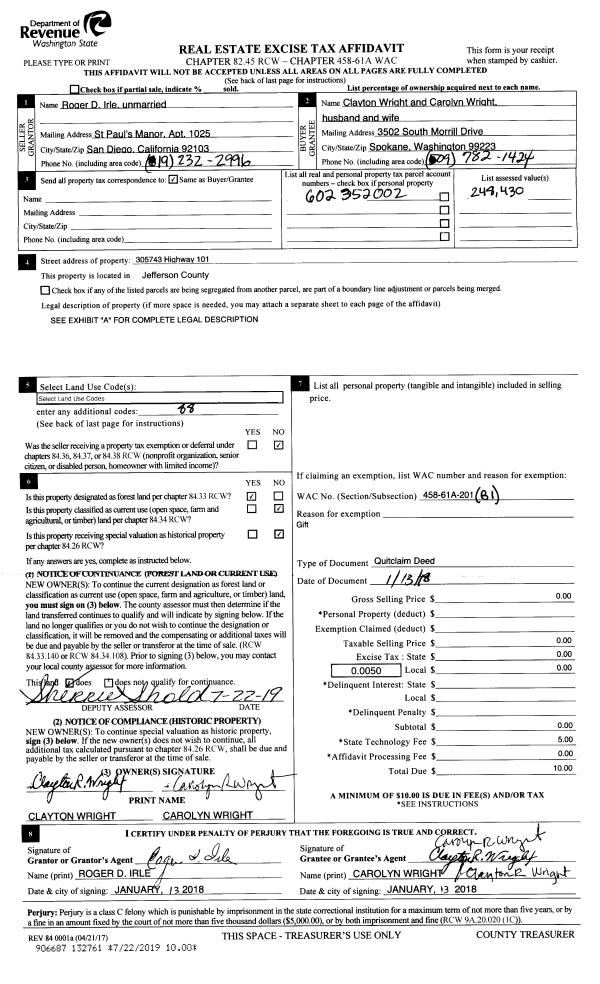 | Mailing Address: | CURTIS M HILL 4901 CLEVELAND ST PORT TOWNSEND, WA 98368 | % Ownership: | 100.0000000000% |