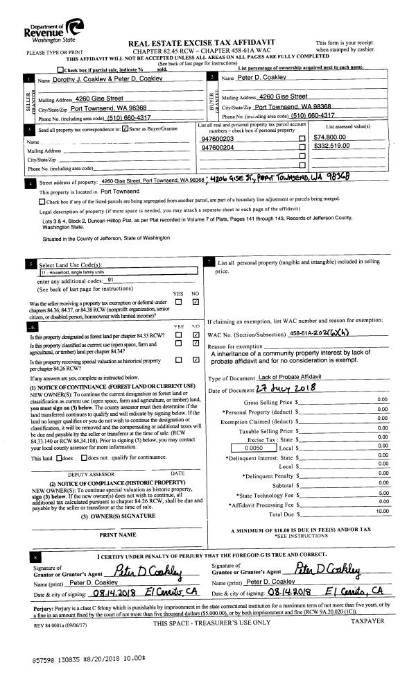 | Mailing Address: | 1033 LAWRENCE ST PORT TOWNSEND, WA 98368-6523 | % Ownership: | 100.0000000000% |