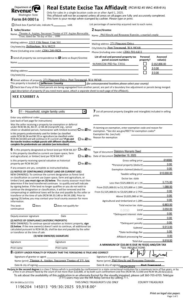 | Mailing Address: | IKUE GOLDSTEIN TRUSTEE GOLDSTEIN REV LIVING TRST 890 51ST ST PORT TOWNSEND, WA 98368-1502 | % Ownership: | 100.0000000000% |