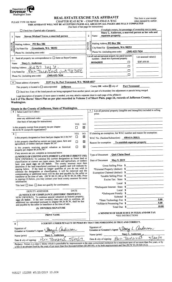 | Mailing Address: | STEPHEN M WILSON 1106 51ST ST PORT TOWNSEND, WA 98368-1520 | % Ownership: | 100.0000000000% |