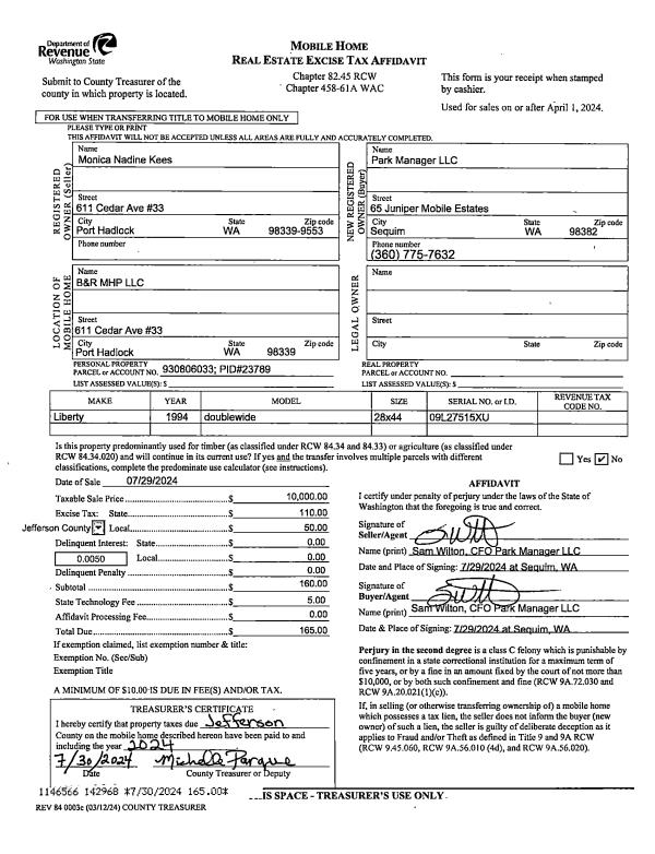 | 1 | 08/22/2023 | SWD | Statutory Warranty Deed | CELESTE M TELL & JAMES R FAIR | JENNIFER & RYAN GRAHAM | | | $298,000.00 | 141463 | |