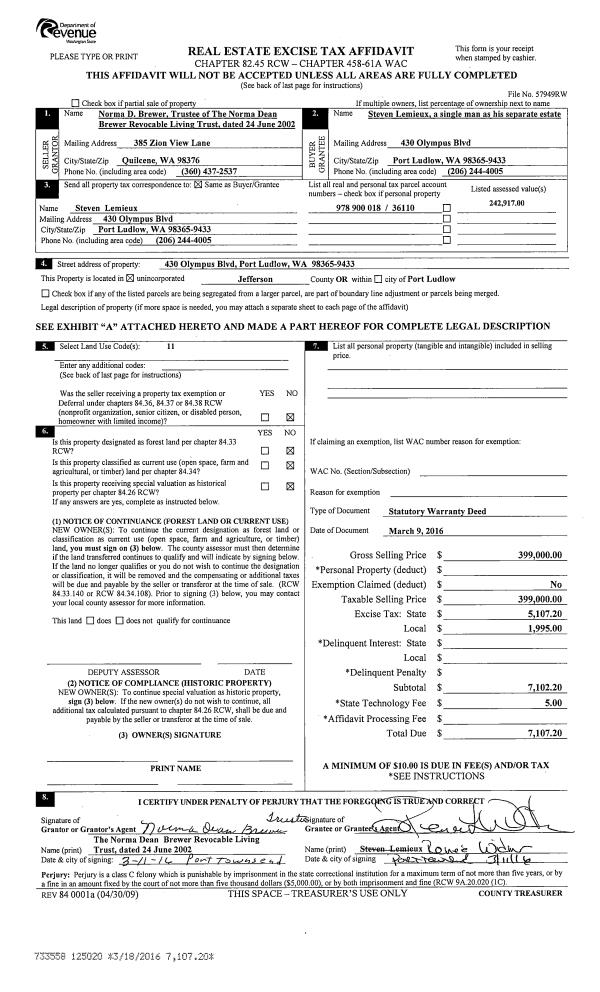 | Mailing Address: | 5280 SHERIDAN ST PORT TOWNSEND, WA 98368 | % Ownership: | 100.0000000000% |