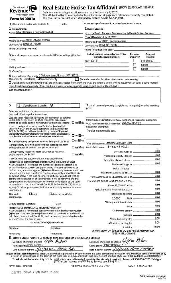 | Mailing Address: | MARGO KARLER TRUSTEE JOSEPH L TUPPER III TRUSTEE 908 53RD ST PORT TOWNSEND, WA 98368-1536 | % Ownership: | 100.0000000000% |