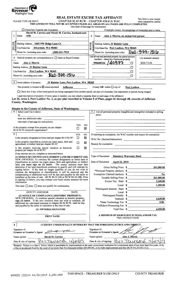 | 4 | 06/28/2017 | SWD | Statutory Warranty Deed | ROSALIE R LINDQUIST | NILS E PEDERSEN | | | $775,000.00 | 128087 | |