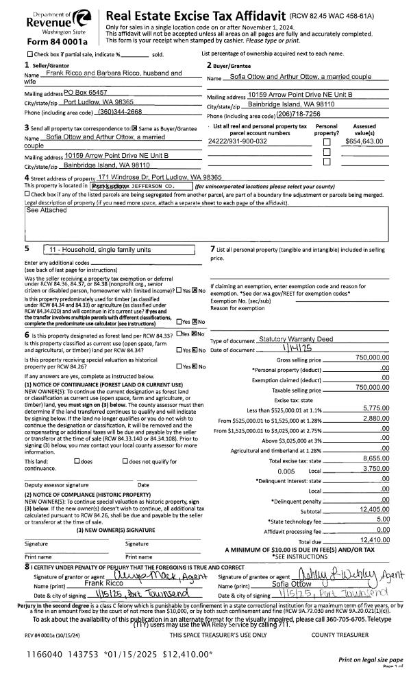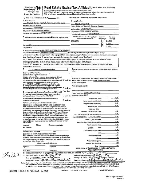 | Mailing Address: | CHERYL J BRADY 896 57TH ST PORT TOWNSEND, WA 98368-1203 | % Ownership: | 100.0000000000% |