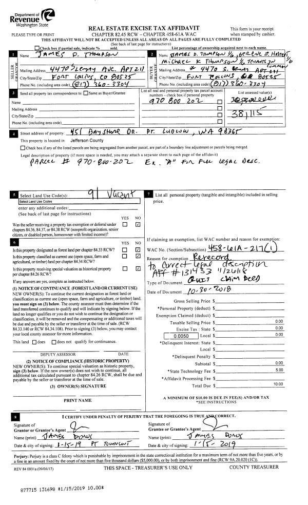 | Mailing Address: | 883 58TH ST PORT TOWNSEND, WA 98368-1226 | % Ownership: | 100.0000000000% |