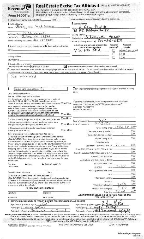 | Mailing Address: | 920 58TH ST PORT TOWNSEND, WA 98368-1204 | % Ownership: | 100.0000000000% |