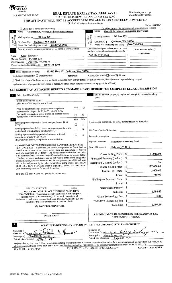 | 1 | 12/20/2021 | SWD | Statutory Warranty Deed | IRENE GRABLE SURVIVORS TRUST | ROBERTA N RILEY & PETER R MASON | | | $850,000.00 | 138279 | |