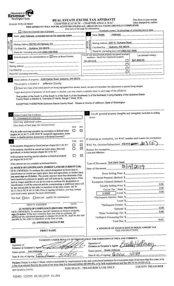 | 4 | 10/04/1996 | QCD | Quit Claim Deed | GRABLE, ROBERT E & IRENE | GRABLE REVOCABLE LIVING TRUST | 0 | 0 | $0.00 | 80528 | 0 |