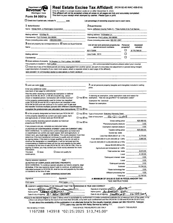| 2 | 02/14/2025 | SWD | Statutory Warranty Deed | IRENE GRABLE SURVIVORS TRUST | JOHN R GRABLE & | | | $450,000.00 | 143909 | |