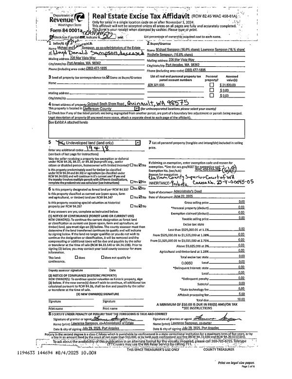 | Mailing Address: | PO BOX 68 QUILCENE, WA 98376-9715 | % Ownership: | 100.0000000000% |