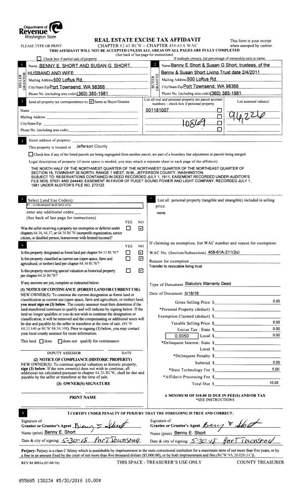 | 3 | 11/05/2018 | SWD | Statutory Warranty Deed | | | | | | 131383 | |