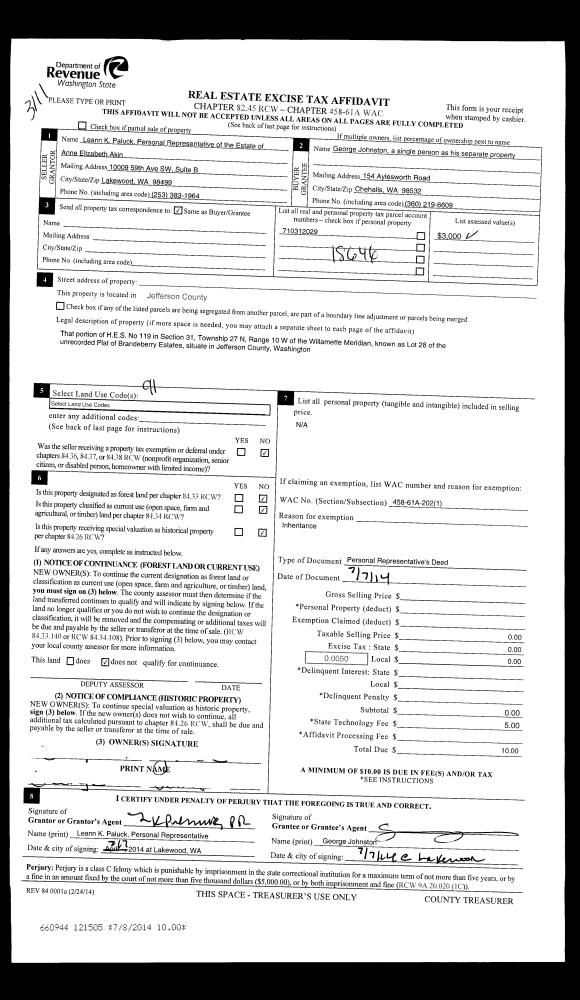 | Mailing Address: | FRANKLIN D CARR TRUSTEE KATHERINE A CAMACHO-CARR TRUSTEE 1430 QUINCY ST PORT TOWNSEND, WA 98368-5324 | % Ownership: | 100.0000000000% |
