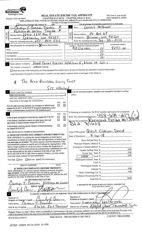 | Mailing Address: | TERESA J GOLDSMITH 536 FOSTER ST PORT TOWNSEND, WA 98368-5306 | % Ownership: | 100.0000000000% |
