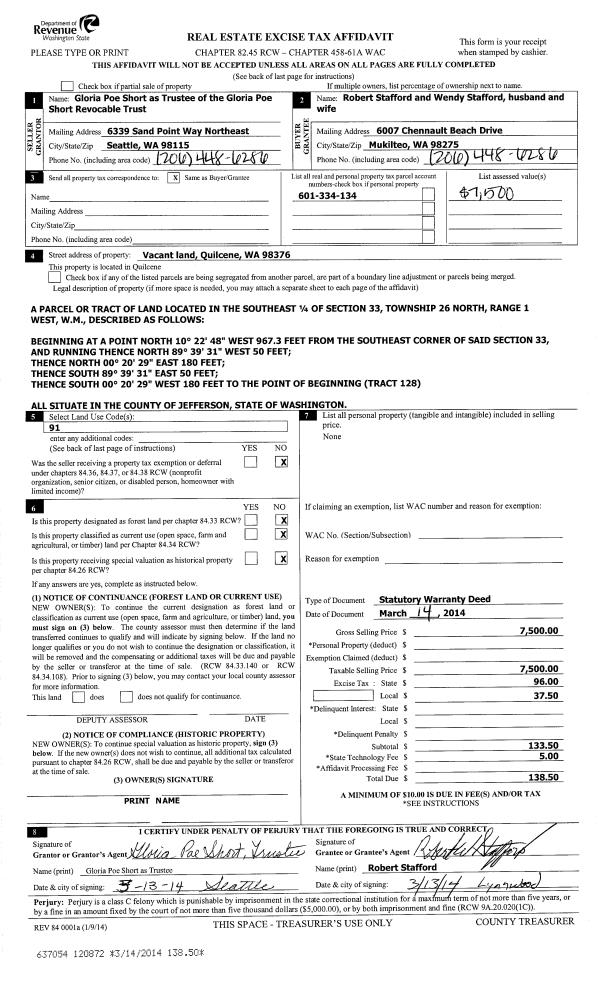 | 1 | 07/09/2015 | QCD | Quit Claim Deed | DAVID PRATT TRUSTEE | TOWNSEND TRANSCOM LLC | | | | 123515 | |