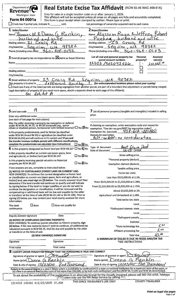 | Mailing Address: | 110 BUCK LOOP RD SEQUIM, WA 98382-7601 | % Ownership: | 100.0000000000% |