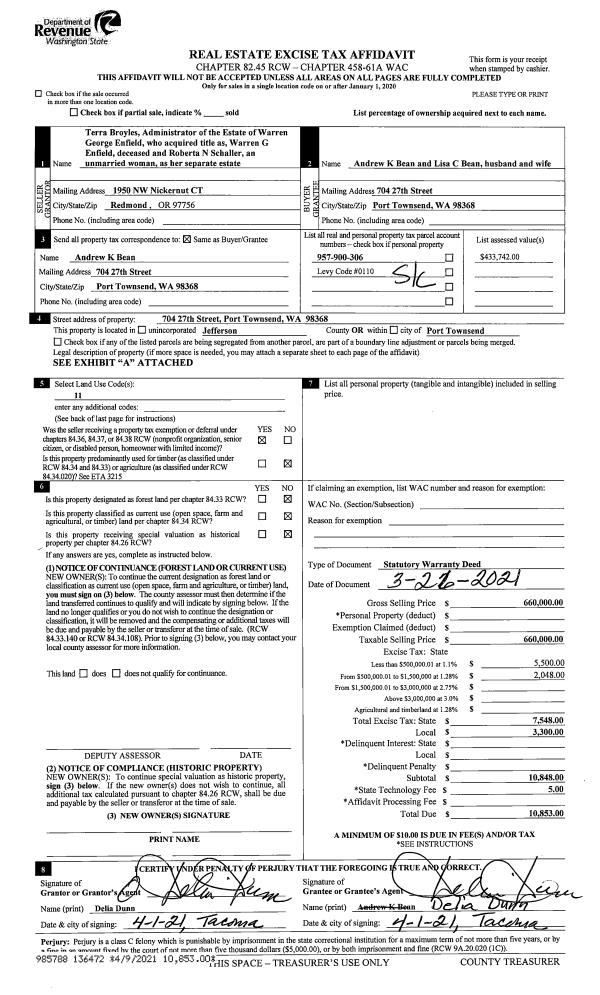| 2 | 06/16/1998 | EASE | Assignment of Easement | GRACE, WILLIAM W & L'WANA | CITY OF PORT TOWNSEND | 0 | 0 | $3,000.00 | 84928 | 0 |