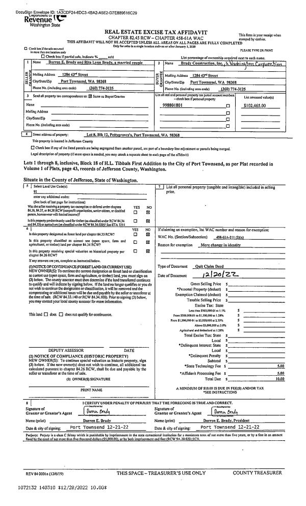 | 2 | 03/21/2003 | WD | Warranty Deed | CITIFOR INC | CITY OF PORT TOWNSEND | 0 | 0 | $0.00 | 98382 | 0 |