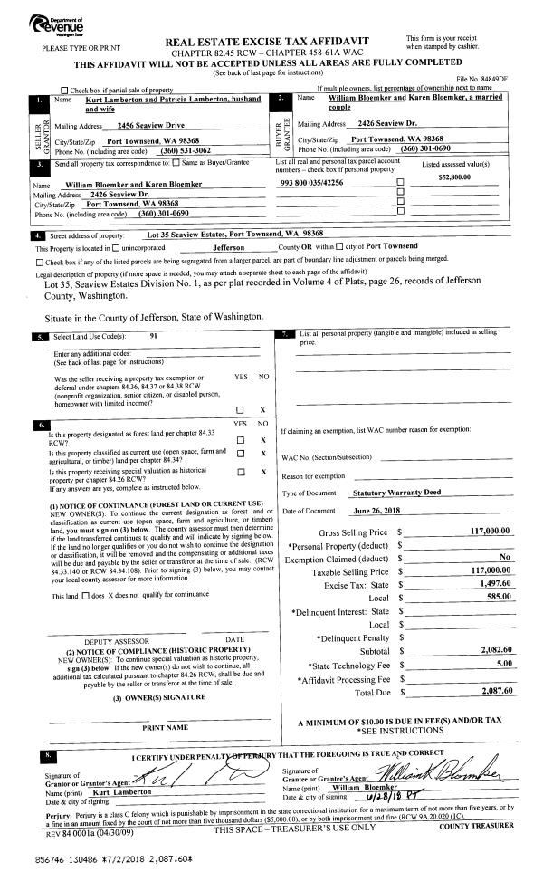 | Property ID: | 35299 | Abbreviated Legal Description: | NOLTON'S 1ST TO PORT TOWNSEND LOT 1(ALL), 2(E20') |