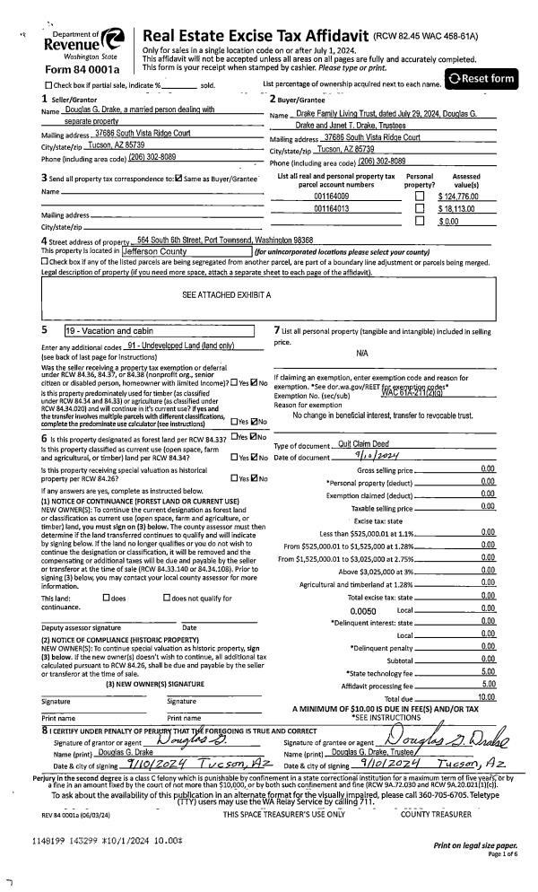 | Mailing Address: | RANDALL MOREHOUSE LIVING TRUST R MOREHOUSE & B JENNINGS TRSTEES 810 POLK ST PORT TOWNSEND, WA 98368-6535 | % Ownership: | 100.0000000000% |