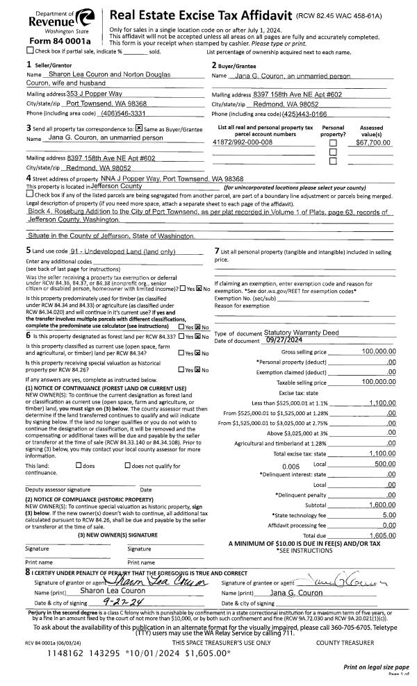 | Mailing Address: | 5830 HILL ST PORT TOWNSEND, WA 98368-1311 | % Ownership: | 100.0000000000% |